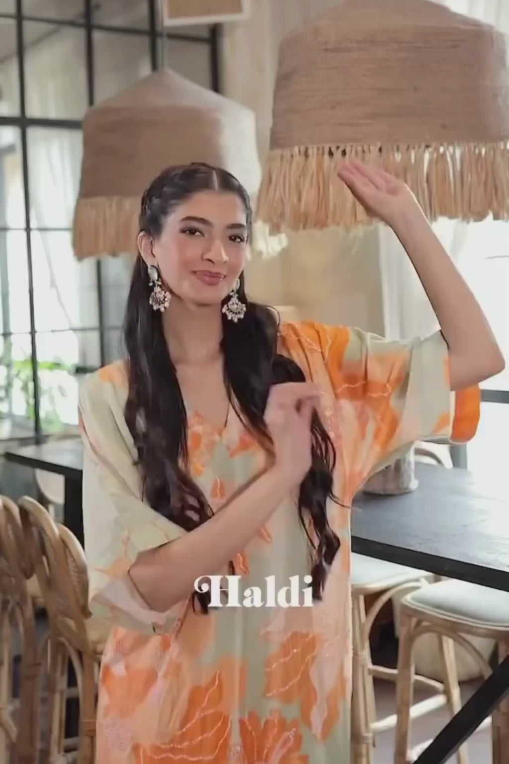 Hanna Khan in Green And Orange Wildrose Tunic Set