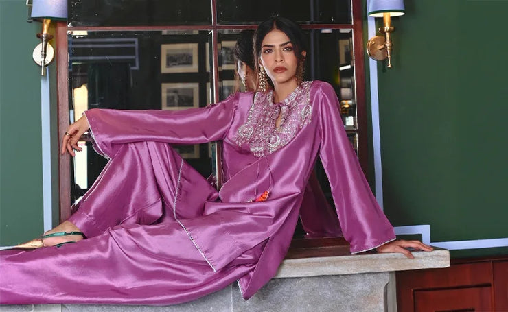 The Heather Kaftan Set Is An Easy Breezy Silk Attire To Be Worn For Semiformal To Formal Events , Made Of Natural Bemberg Silk With Highlighted Embroidery On The Top